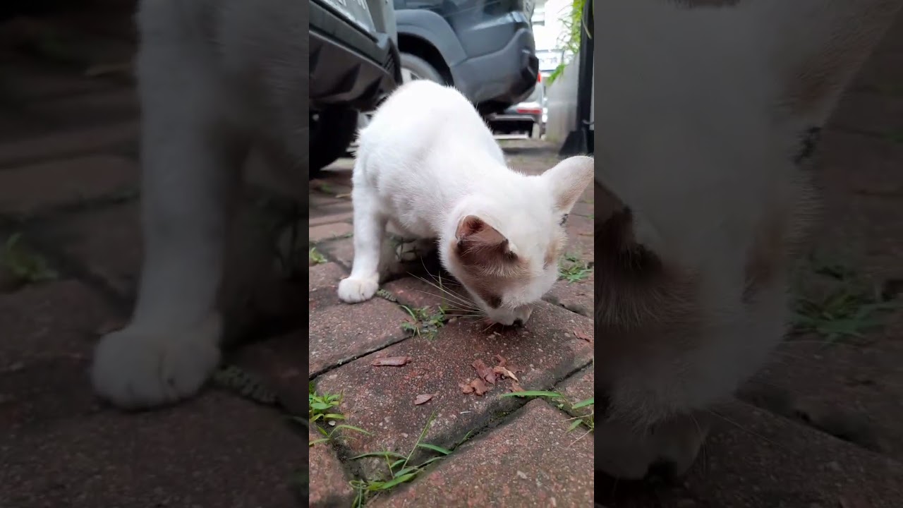 Kucing putih yang kurus matanya bak kristal biru | A skinny white cat with blue crystal eyes