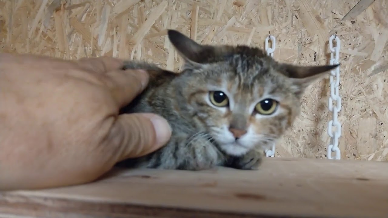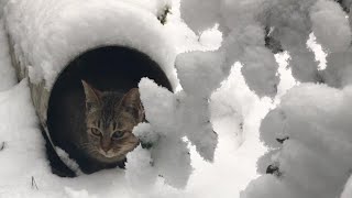 「雪のトンネル」の中のキジトラ猫ちゃん Cat in a snow tunnel【いなか猫2206】japanese funny cat
