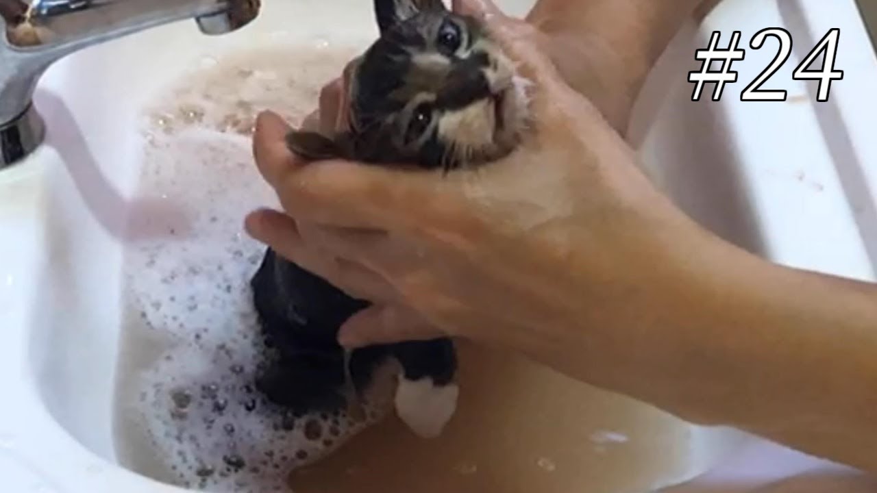 【閲覧注意】ノミだらけの子猫のお風呂。外猫の過酷な汚れでお湯も茶色に・・・First bath for kitten.Yamato the cat.-#24
