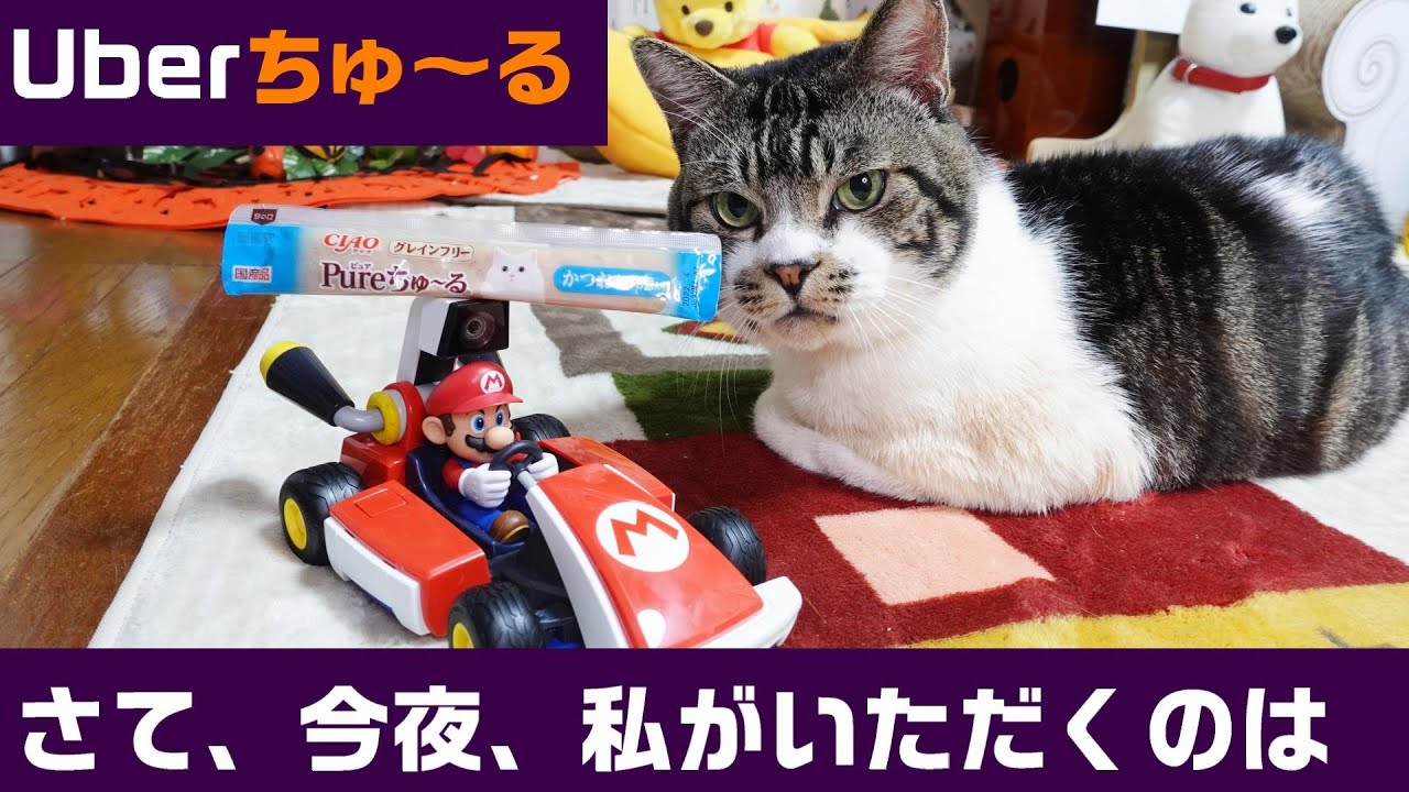 『さて今夜私がいただくものは・・』猫にマリカーでウーバーイーツしてみた☆ちゅ~るカート【リキちゃんねる・猫動画】Cat video きじしろねこのいる暮らし