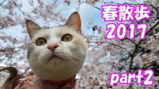 お散歩猫、今年もお花見に【ネコ吉春散歩2017 part2】Neko Cat Spring stroll 2017 part 2
