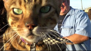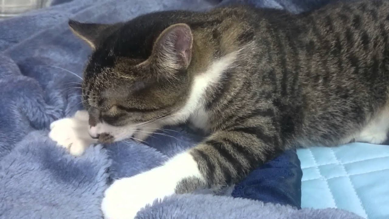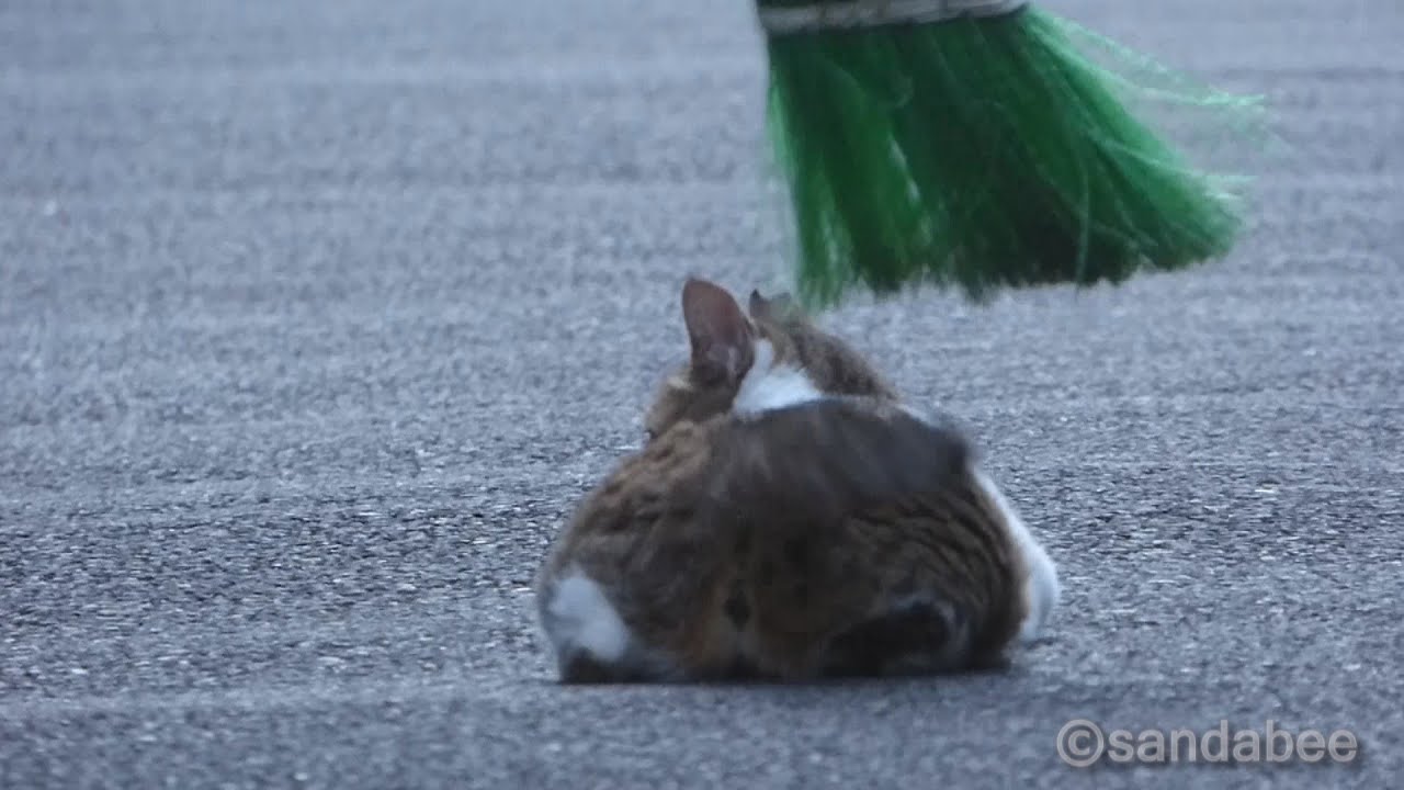 ホウキで掃かれるネコ。The cat which is swept with a broom.
