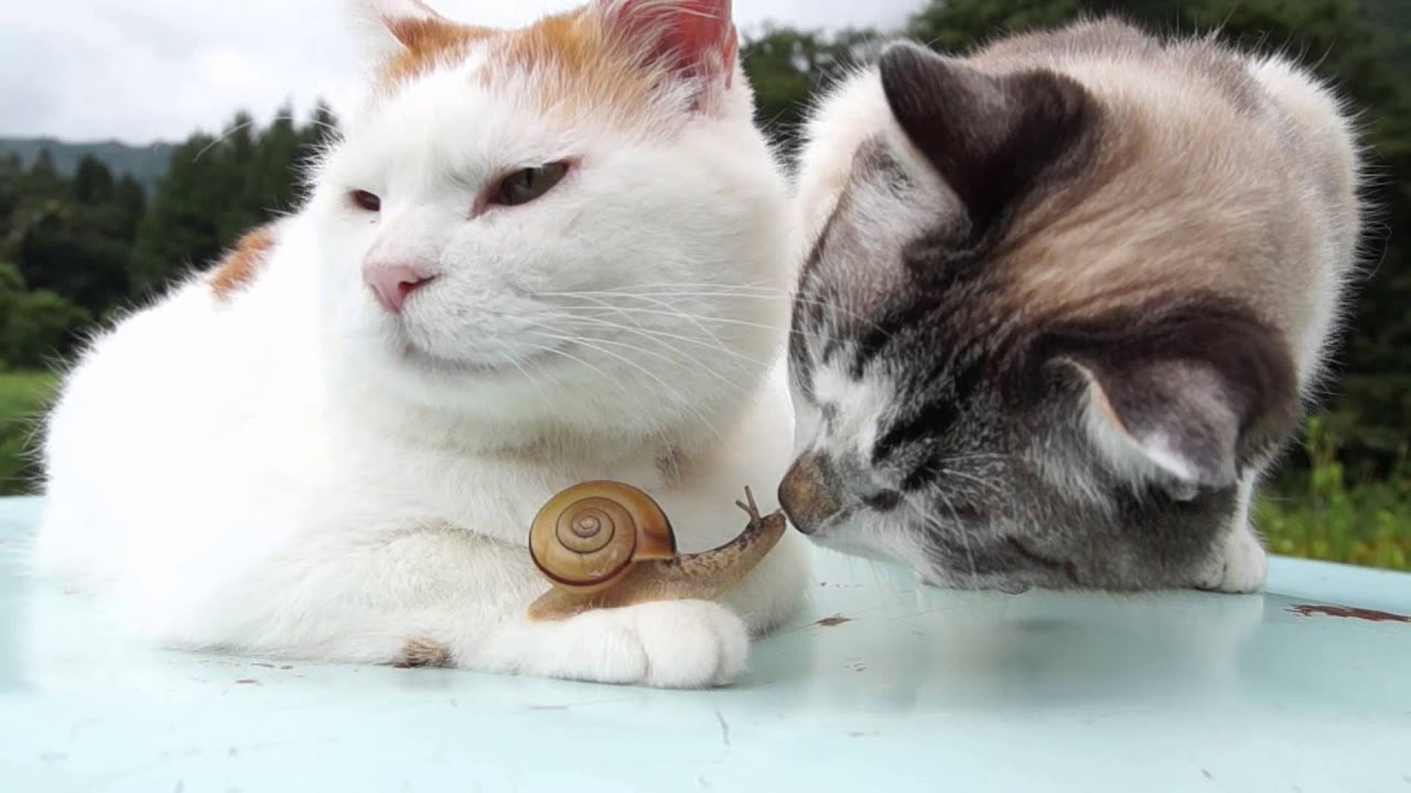 のせ猫 x かたつむりとクロ Snail and cats