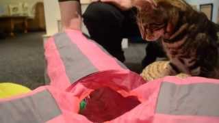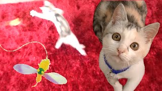 猫おもちゃ【カシャぶんスーパーロング ハッチ】で遊ぶ子猫のネコ吉♪ Kitten playing with a cat toy [Super Long Flying Honey Bee]