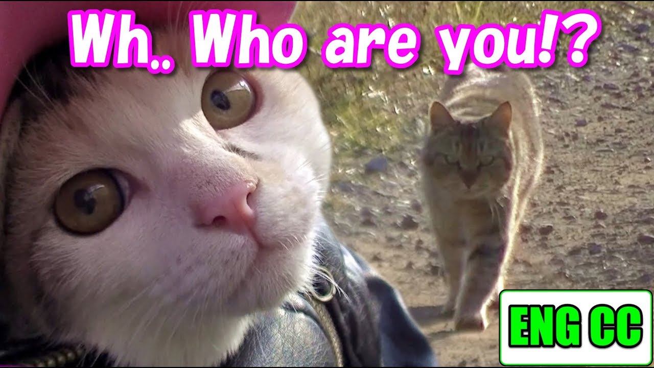 一触即発!?生まれて初めて野良猫に鉢合わせたネコ吉!喧嘩はしないで!Neko-Cat of Kitten facing at a stray cat for the 1st time!【Eng CC】