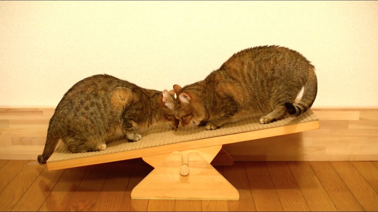 シーソーで遊ぶ猫 Cats Playing on a See Saw