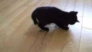 リボンとじゃれるネコ Cat going crazy with a ribbon