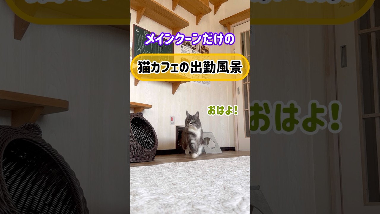 メインクーンだけの【猫カフェの出勤風景】#cat #cooncat #mainecat