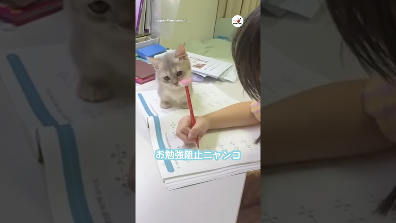 お勉強は絶対阻止する子猫!|PECO #マンチカン #子猫 #愛猫家 #子猫のいる生活 #munchkin #kitten #kittenlife #catlover