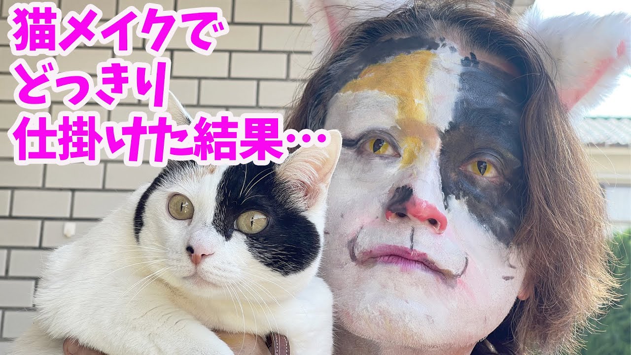 【爆笑】猫メイクでネコにどっきり仕掛けた結果…【オススメ動画】[Laughs] I surprised cats with cat makeup! [Recommended video]